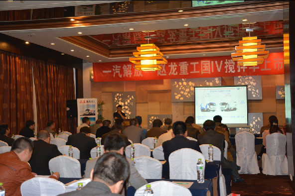 2014年4月20日,由一汽解放汽车销售有限公司和浙江赵龙重工有限公司联合主办的“一汽解放-赵龙重工国IV搅拌车上市发布会”于常州武进区顺利召开。我司总经理斯之清与一汽解放区域经理张祎参加了此次会议。会议邀请到了常州地区以及周边地区行业用户达60余人。