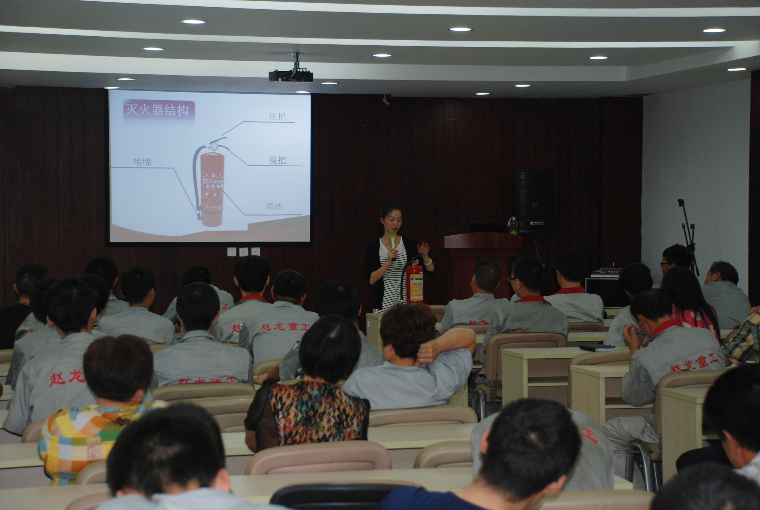 课上,教官首先通过影像资料展示了近期全国范围内影响力较大的火灾案例,以此增强员工火灾防范意识,随后全面细致地分析了灭火器种类和实际操作步骤、注意事项、企业火灾危险性、火灾燃烧特点及灭火救援难点,使员工充分认识到消防器材的重要性,并结合企业实际情况,重点讲述了消防“四个能力”建设内容,要求企业通过持续性、长期性的消防安全教育,使企业管理人员和员工掌握检查和消除隐患能力、扑救初期火灾能力、引导人员疏散逃生能力、宣传教育培训能力并能基本运用。